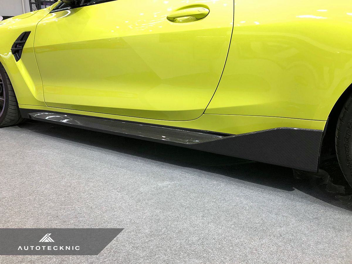 AutoTecknicがG80M3用に新しくリリースしたドライカーボンファイバー製品です。サイドスカートは、工場出荷時の取り付け位置の下部に直接取り付けるように設計されており、迅速かつ簡単に取り付けることができます。当社独自のオートクレーブ技術を使用した100%本物の3Kツイル織り(2X2)プリプレグカーボンファイバーを使用して製造されたこれらのサイドスカートは、高光沢の耐紫外線クリアコートの複数のコーティングで仕上げられています。モータースポーツの理想の軽量化原則に従い、オートクレーブ真空成形プロセスを利用して、優れた強度とフィッティングを備えたこのリップを製造しています。